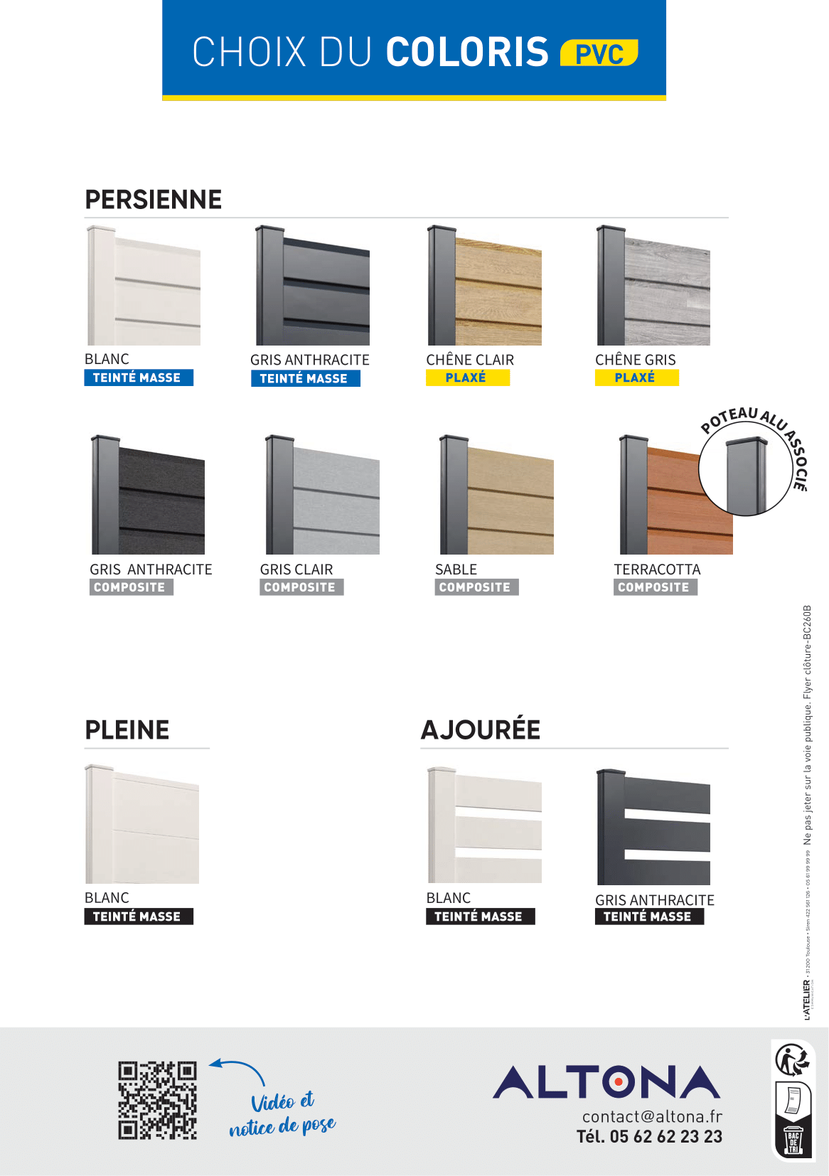 Notre calculateur de clôture est l’outil idéal pour tous ceux qui souhaitent construire une clôture autour de leur propriété. Il est facile à utiliser et permet de calculer rapidement le nombre de produits nécessaires à la création de votre clôture, ainsi que les coûts associés. Il suffit de saisir les dimensions de votre clôture et de choisir le type de clôture souhaité (teinté masse – plaxé – composite) pour obtenir des résultats précis. Notre outil vous aide à planifier et à budgétiser votre projet de clôture efficacement. Essayez notre calculateur de clôture dès maintenant et construisez la clôture de vos rêves en toute simplicité!